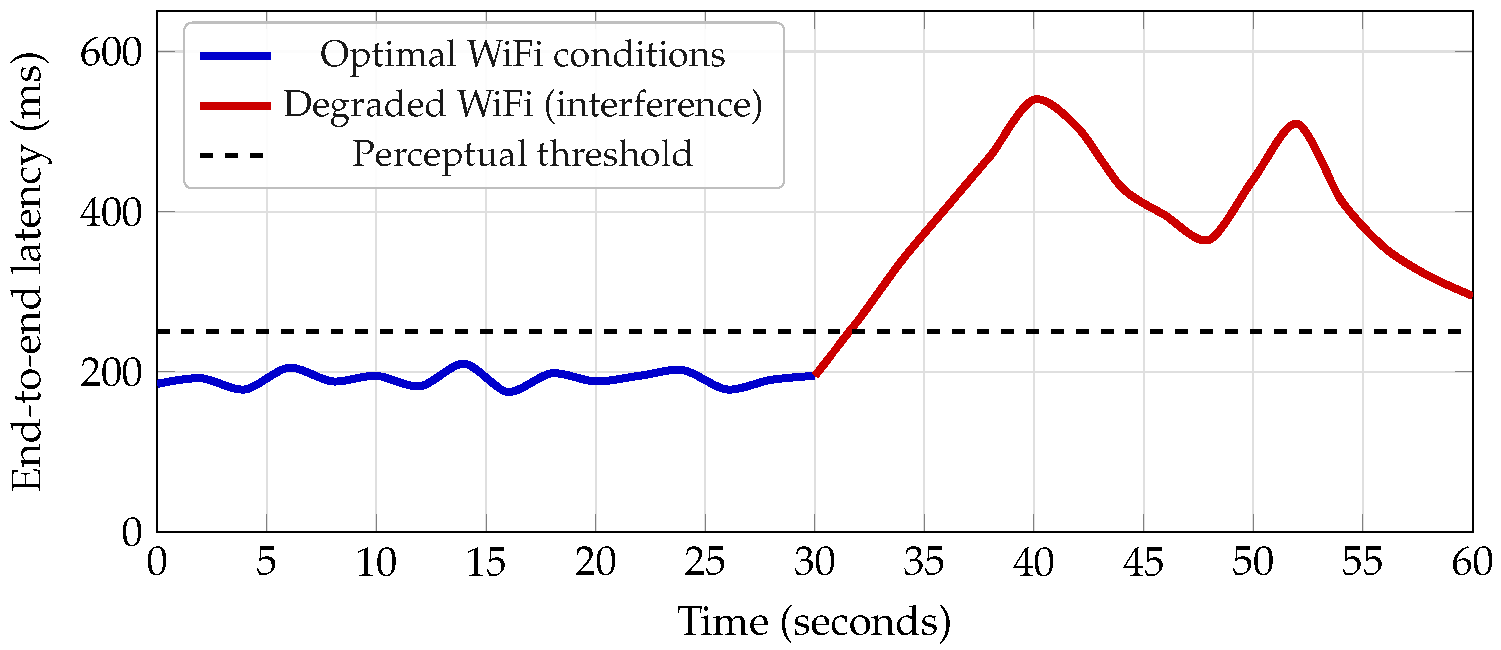 WiFi constraints: the DJI Tello operates exclusively on 2.4 GHz WiFi using only three non-overlapping channels (1, 6, and 11), making it highly susceptible to interference in typical indoor environments. This represents a fundamental platform limitation inherited from the consumer drone design. Future work will investigate integration with drones supporting (1) 5 GHz WiFi bands with reduced congestion; (2) dedicated low-latency control links (e.g., ExpressLRS, TBS Crossfire) achieving sub-10 ms transmission; or (3) wired tether connections for latency-critical applications. Based on our measurements, we estimate that eliminating WiFi variability could reduce end-to-end latency to approximately 120 ms, approaching the responsiveness of wired gaming controllers.
