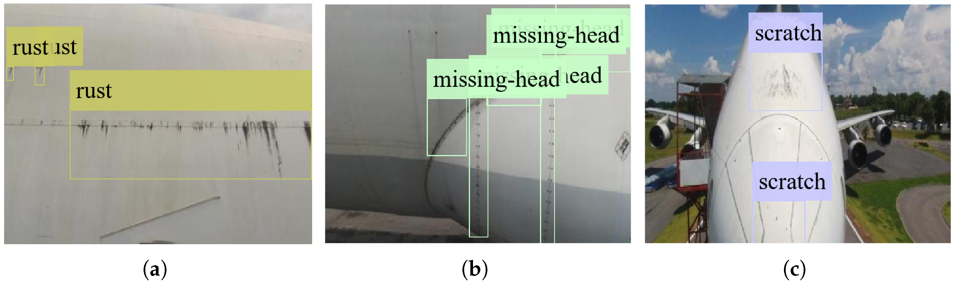 - Li, H.; Wang, C.; Liu, Y. YOLO-FDD: Efficient defect detection network of aircraft skin fastener. Signal Image Video Process. 2024, 18, 3197–3211. [Google Scholar] [CrossRef]