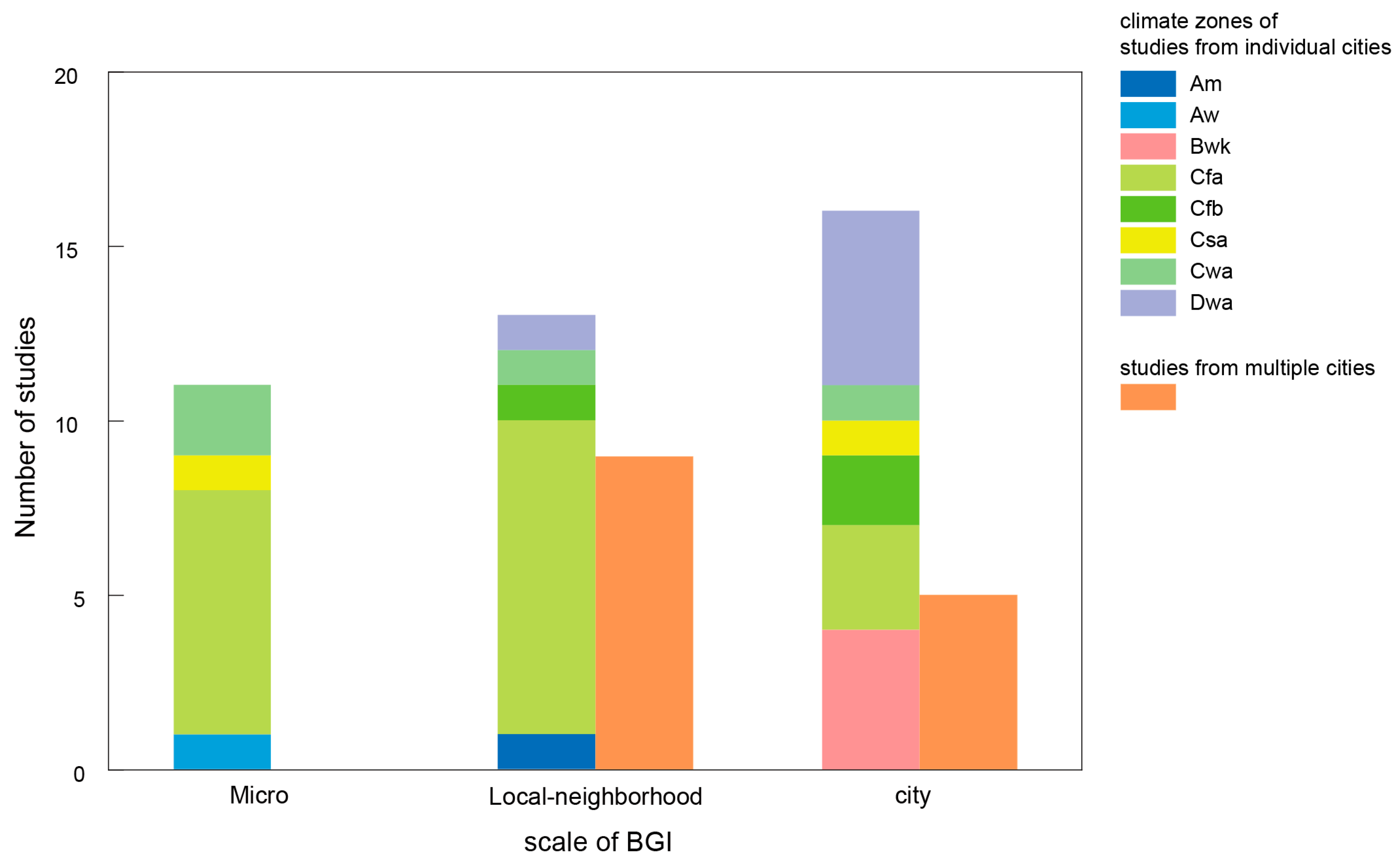| No. | Year | Author | City (Nation) | Climate Zone | BGI Types |