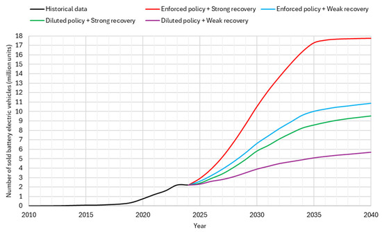 Analyzed scenarios regarding the sales of battery electric vehicles.