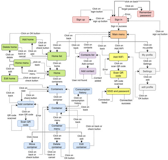 Once the user signs in, they can navigate the main menu, which includes: a list of homes, a list of contacts, add WiFi, and my profile, ensuring intuitive navigation and a clear hierarchical structure within the application (Figure 9).