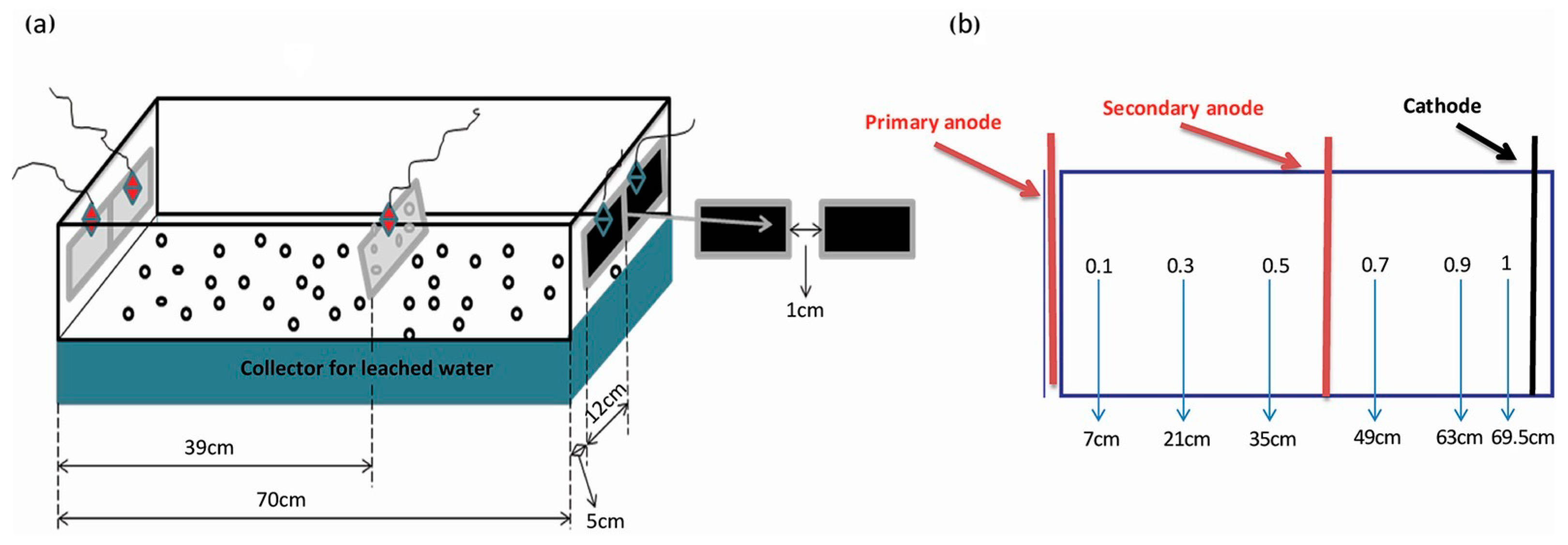 - Hassan, I.; Mohamedelhassan, E.; Yanful, E.K. Solar powered electrokinetic remediation of Cu polluted soil using a novel anode configuration. Electrochim. Acta 2015, 181, 58–67. [Google Scholar] [CrossRef]
