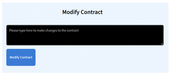 - User-Driven Contract Modification: A novel, interactive feature allows users to apply textual edits using simple natural language instructions (e.g., “Please change the expiration date…”) (see Figure 4). The system processes this by constructing a specialized modification prompt, which directs GPT-4o [12] to generate a revised version of the full contract, accelerating the drafting process.