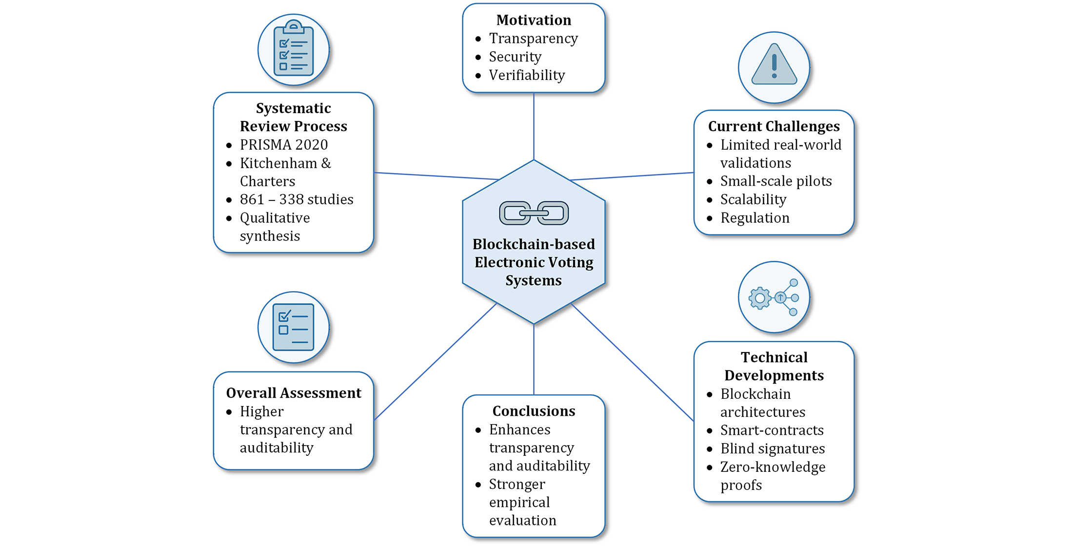 The studies reviewed agree that blockchain-based electronic voting systems represent a significant advance over traditional and conventional electronic systems, especially in terms of transparency, security, and trust. Most proposals exploit the inherent properties of blockchain technology, such as immutability, node distribution and verifiable public record, to mitigate historical risks associated with vote manipulation, centralisation of power and lack of traceability.
