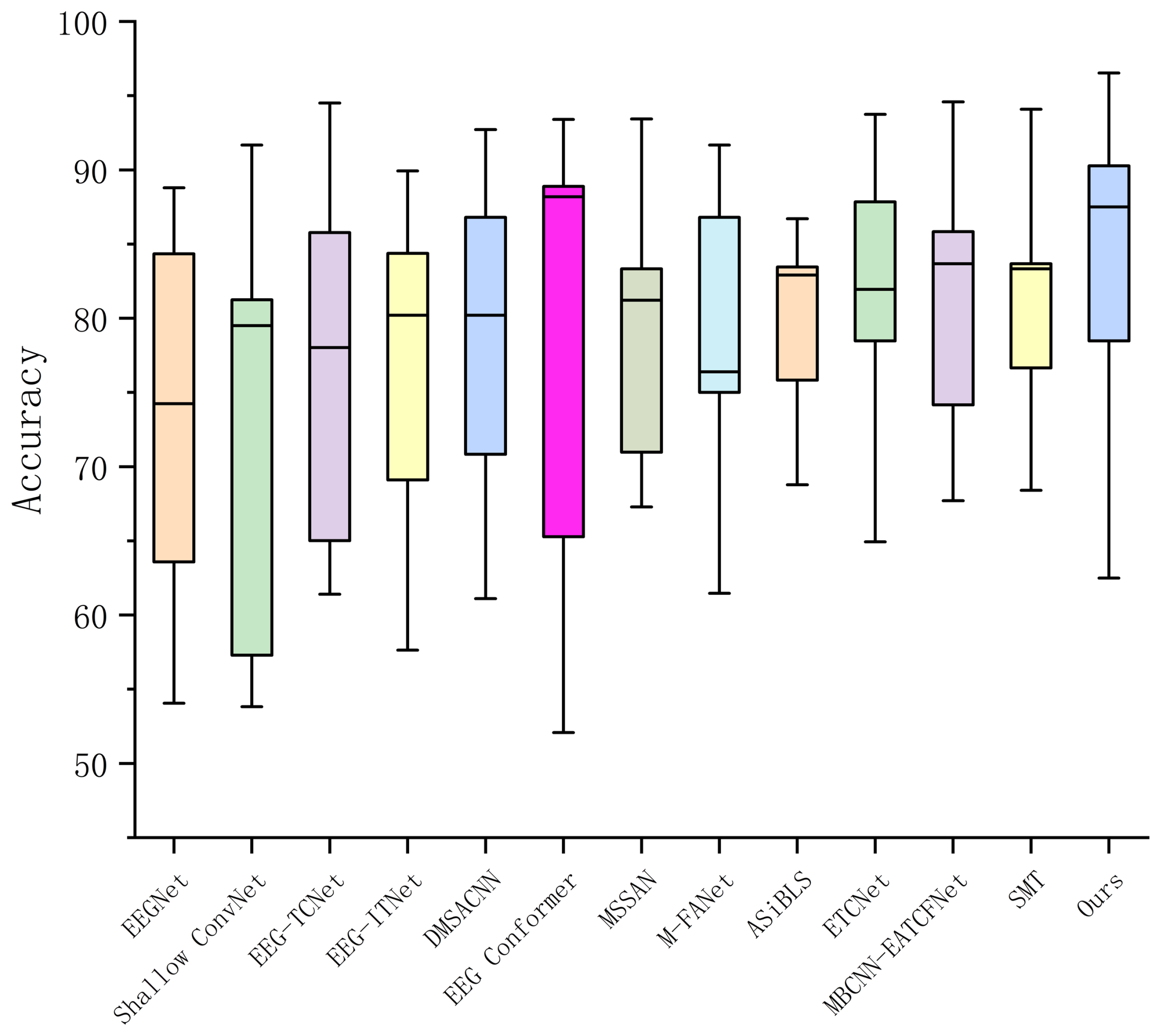 12], while EEG-TCNet enhanced temporal dependency modeling by integrating a Temporal Convolutional Network (TCN) into the EEGNet framework [