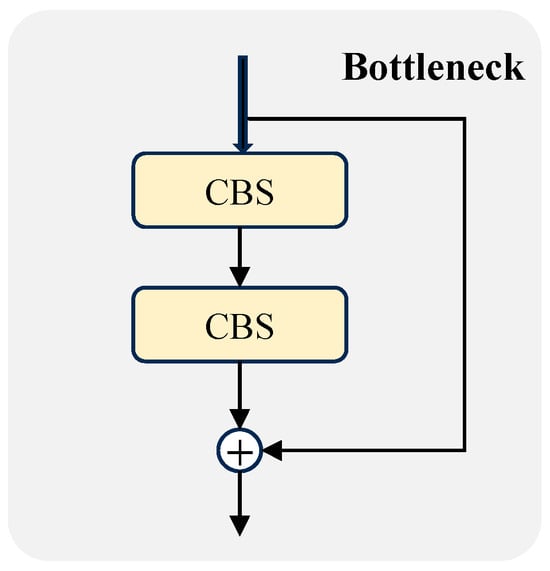 Structural layout of the bottleneck, in which CBS consists of Conv, BN, and SiLU.