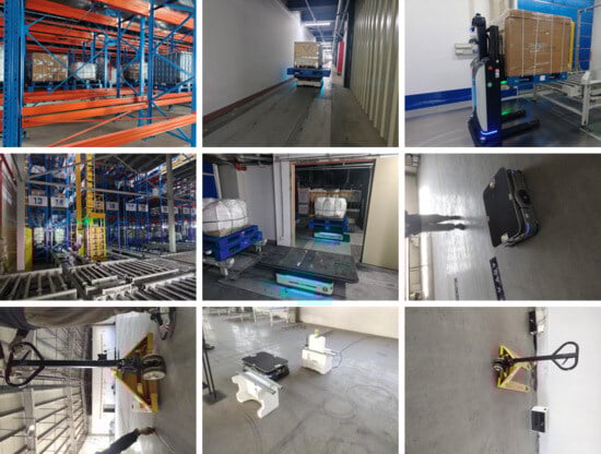 To meet the actual requirements of the Automated Guided Vehicle system in a “smart factory”, this paper constructed a target detection dataset dedicated to industrial scene perception, namely ZKLJ. This dataset covers three categories of typical dynamic obstacles: AGVs, on-site personnel, goods, and industrial forklifts. Image collection covers multiple key nodes and typical environments of the production line, including complex background occlusion, high-density multi-target scenarios, and image quality degradation conditions. To ensure data diversity and representativeness, the data collection lasted for three months, covering the entire production process. Finally, 914 original images were obtained through manual annotation, with the image size uniformly set to 640 × 640 × 3 (height × width × channels), and annotations formatted in the VOC standard. The category distribution ratio is as follows: on-site workers (33.2%), AGVs (20.1%), goods (24%), and forklifts (22.7%). To ensure the scientific validity of the dataset, we clarify the acquisition and partitioning details. Camera Setup: The images were captured using a monocular industrial camera (resolution of 1920 × 1080). Acquisition Environment: Targets were recorded at typical working distances ranging from 2 to 15 m. The lighting conditions encompassed both steady artificial fluorescent lighting within the workshop and highly variable natural light near docking bays, ensuring exposure diversity. Partitioning and Anti-Leakage Policy: The original 914 images were divided into training, validation, and testing sets according to a 7:1:2 ratio (specifically, 640 images for training, 91 for validation, and 183 for testing before augmentation). To prevent data leakage, we implemented a scene-based splitting policy: images belonging to the same continuous temporal sequence or the same physical workspace were strictly assigned to the same split. This ensures that the model is evaluated on entirely independent scene instances, rather than nearly identical adjacent frames of the training samples, thereby ensuring the reliability of the performance metrics.