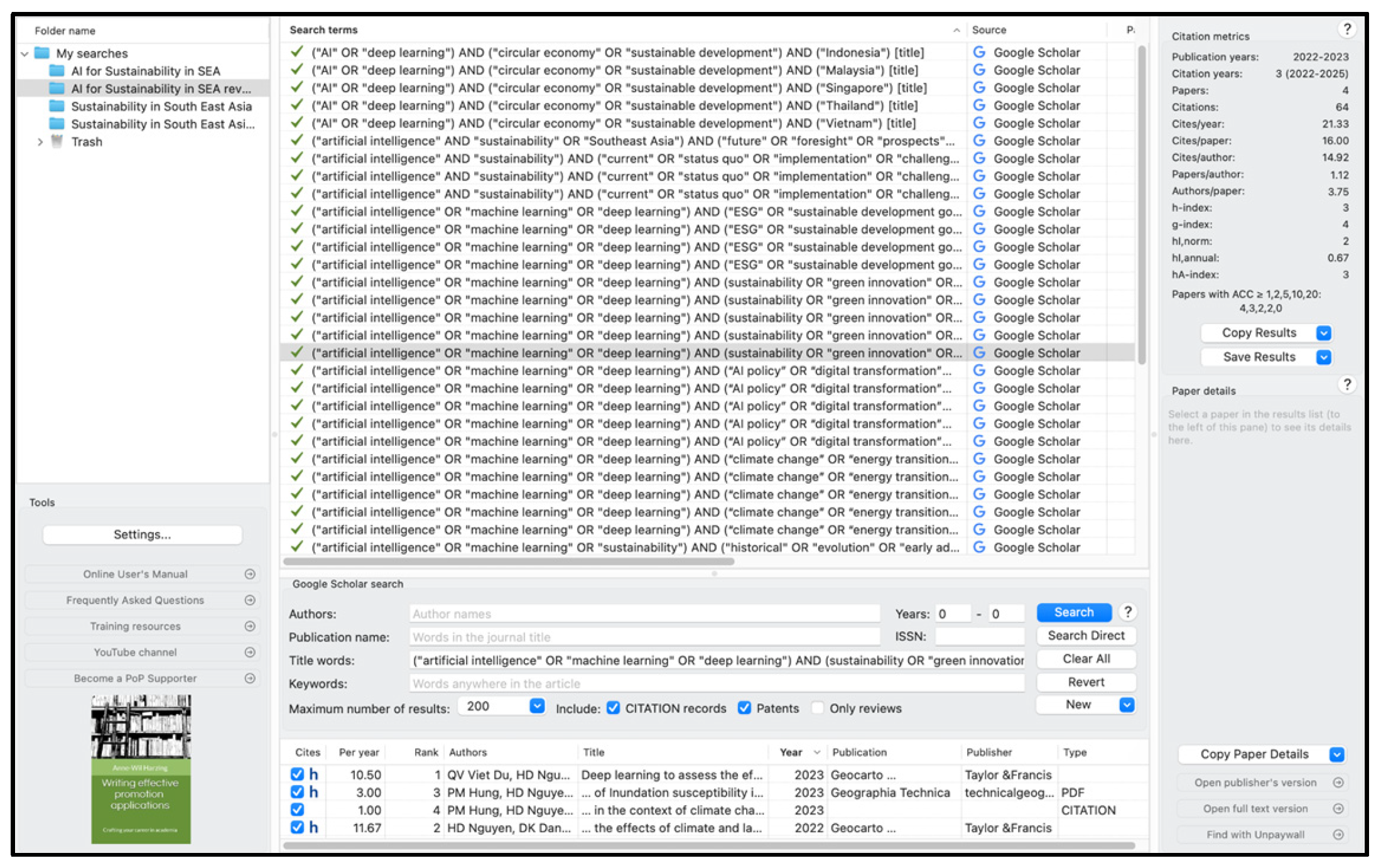 | 2 | (“artificial intelligence” OR “machine learning” OR “deep learning”) AND (sustainability OR “green innovation” OR “climate change” OR “energy efficiency” OR “environmental management”) AND (“Southeast Asia” OR “ASEAN” OR “SEA” OR “Brunei” OR “Cambodia” OR “East Timor” OR “Timor Leste” OR “Indonesia” OR “Laos” OR “Malaysia” OR “Myanmar” OR “Philippines” OR “Singapore” OR “Thailand” OR “Vietnam”) |