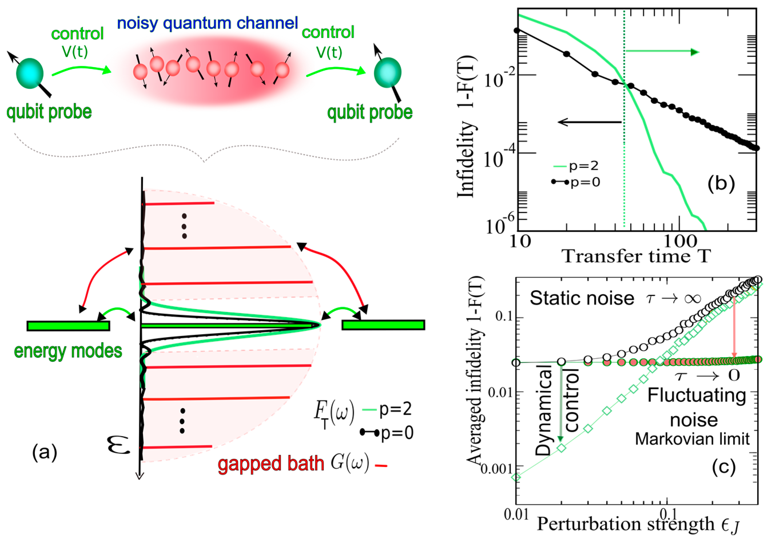 - Dynamical boundary-control can make the channel most robust against static noise, because it filters out the bath-energies that damage the transfer. In Figure 3c control is shown to be advantageous compared with the static control case , at the expense of increasing the transfer time by only a factor of 2.