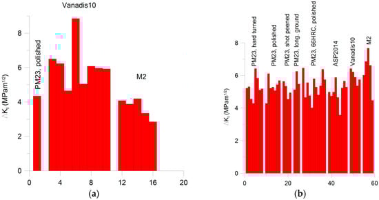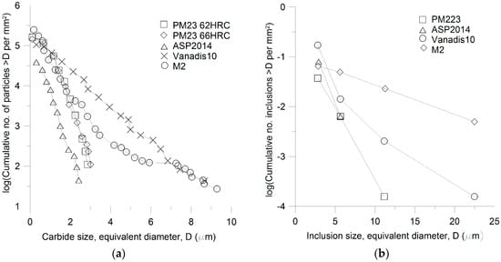 - Meurling, F.; Melander, A.; Tidesten, M.; Westin, L. Influence of carbide and inclusion contents on the fatigue properties of high speed steels and tool steels. Int. J. Fatigue 2001, 23, 215–224. [Google Scholar] [CrossRef]