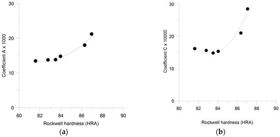 These depths are being worn for each blow and it was assumed that the wear rate did not change. The wear tolerance was set to 0.4 mm. The correlation between work-piece properties and tool life are shown in Figure 6a,b.