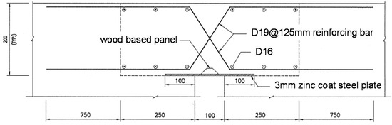 - Steel reinforcement configuration: 2-D19@12.5 cm