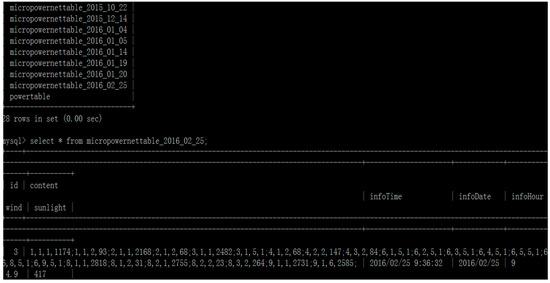 The system inserts the aggregated electrical data into the microgrid electrical table. As the SCADA system gathers microgrid electrical data every five seconds, there will be 17,280 items a day, which means that over time, the data volume will become huge. The query access to the microgrid electrical data is still very slow even with the creation of an index used for the microgrid electrical data table. To solve the problem mentioned above, this study used a sub-table mechanism to dynamically generate a new table daily. When data was inserted into the microgrid electrical database table, the system judges whether there is a current date microgrid electrical table using the “Create Table If Not Exists” statement first. If the table exists, the system inserts the data into it; however, if the table does not exist, the system will create the table and insert the data into it. Every time these tables are accessed, even simple database connections may affect efficiency. This paper used cache mechanisms to solve that issue. Cache mechanism identifies the current date microgrid electrical table that exists or is nonexistent through the map cache of the current microgrid electrical table and combines it with the “Create Table If Not Exists” statement to solve the cache empty problem when the system restarts, which ensures that the microgrid electrical data acquisition is stable in the SCADA system.