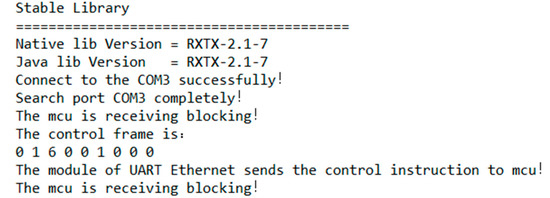 The control instruction being sent to the mcu (Microcontroller Unit) by the UART Ethernet module.