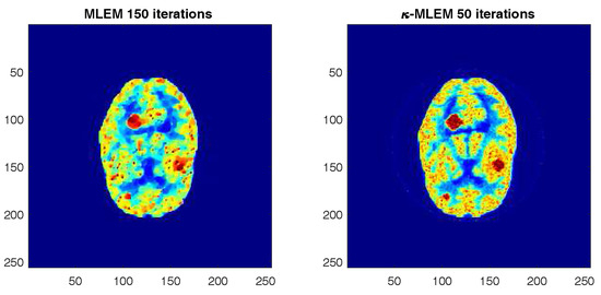- Shepp, L.A.; Vardi, Y. Maximum likelihood reconstruction for emission tomography. IEEE Trans. Med. Imaging 1982, 1, 113–122. [Google Scholar] [CrossRef] [PubMed]