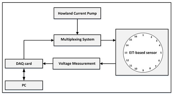 Block diagram of the EIT-based sensor system for current injection and voltage measurement.