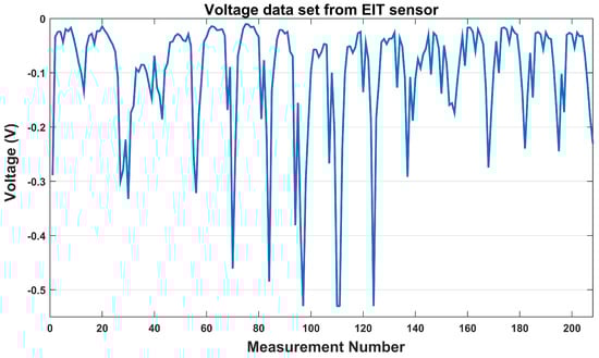 An example of a 208 voltage data set for a typical 16-electrode EIT system.