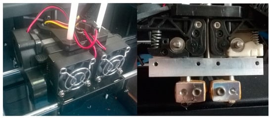 The material extrusion desktop 3D printer on which the paste extruder was added-on is a Cartesian-style printer, equipped with a dual extruder (Figure 3). The printer has a closed build chamber and a build platform that can heat up to 110 °C. As for electronics, the printer comprises all the components that the paste extruder requires in order to function. These include two low-current stepper motor drivers, and two ADCs, which allow temperature control using thermistors. The 3D printer runs on open-source firmware Sailfish 3.4 (www.sailfishfirmware.com), during tests.