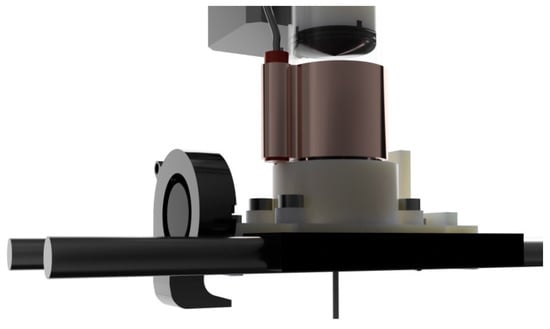 The 3D printer used in testing the device uses the stepper motor bodies mounted on the extruder to trigger the mechanical switch of the end stop for the x axis. Since the motor position was changed for the paste extruder, a new solution to trigger the end-stop was designed (Figure 8).
