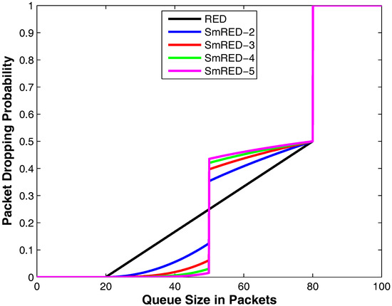- Plasser, E.; Ziegler, T.; Reichl, P. On the Non-linearity of the RED Drop Function. In Proceedings of the 15th international conference on Computer communication (ICCC ’02), Mumbai, India, 12–14 August 2002; pp. 515–534. [Google Scholar]