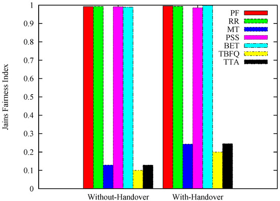 - Shojaedin, N.; Ghaderi, M.; Sridharan, A. Effect of handover on the performance of scheduling algorithms in LTE networks. In Proceedings of the 2015 IEEE Wireless Communications and Networking Conference (WCNC), New Orleans, LA, USA, 9–12 March 2015; pp. 1386–1391. [Google Scholar]