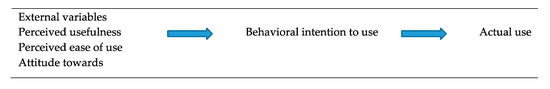 The main description of TAM refers to the fact that the use of technology is influenced, directly or indirectly, by the user’s behavioral intention, attitude, the perceived usefulness of the system, and the perceived ease of using it. At the same time, external factors can affect intention and use through the perceived usefulness and ease of use [28]. Figure 1 represents an adaptation of the original TAM model.