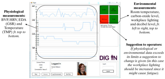Further, risks connected to data presentation were seen in the case studies. One of the operators thought that it would be inconvenient to see the data in real-time and that he would rather see the data after the order was completed, or in his free time. If physiological measurements were used at the station, operators thought that it should be voluntary to use them. Also, operators thought that if they were aware of their own stress levels, this would contribute to additional stress. In addition, they wanted notifications through either symbols or pre-selected text. Although the sample sizes of the case studies were small, the feedback from the operators are important. To design a system according to what the operators think can improve interaction and operator performance [61,62] and usability [63,64,65,66,67,68]. A number of questions were raised during the workshop, such as, who will support the device interface and whether data from devices were enough to assess operator wellbeing.