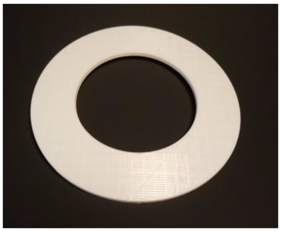 Example of flexible 3-D printed automotive related part, 2″ gasket—shown enlarged for clarity.