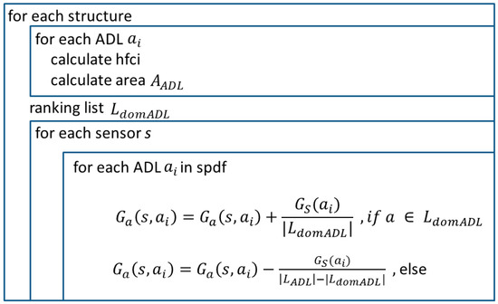 where represents the number of all assigned ADL to the sensor. See Figure 4 for a visualization of this algorithm.