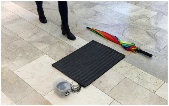 Through explorative prototyping, we refined the Rainminder’s concept and people’s interaction with it. The first prototype was based on wooden panels equipped with pressure sensors, that transmit changes in resistance, to a connected Arduino Yún Board. During the next iterations, the bulky wooden panels were replaced with Velostat-based pressure sensors. The advantages of these self-made sensors are the material’s flexibility and the thinness (Figure 3).