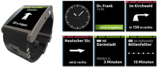 - Müller, S.; Carl, A.M.; Klein, P.; Rieß, H.; Bender, D. Examples for a ubiquitous mobility assistant as outcome of the inDAgo project. In Proceedings of the 8th ACM International Conference on PErvasive Technologies Related to Assistive Environments, Corfu, Greece, 1–3 July 2015. [Google Scholar]