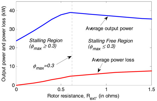 Equation (30) indicates that the flow coefficient can be modified according to rotor resistance. The value of external resistance added to rotor circuit of generator regulates the rotational speed of turbine and thus its output power (Equation (16)). The turbine speed is adjusted to avoid stalling phenomenon and keep flow coefficient at its desired value corresponding to maximum torque coefficient. Thus, to select the optimum values of rotor resistances for desired value of flow coefficient, the performance index (PI) can be defined as: