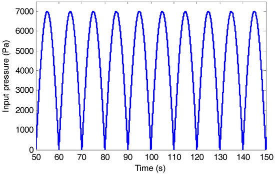 Figure 8. Input pressure for dP = |7000 sin (0.314t)| Pa.
