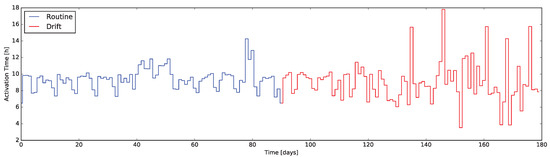 The “watching TV” Activity Daily Time (ADT) indicator: It is evident how the indicator tracks the behavioral change ad its value rises over 5 h in the drift-affected portion.