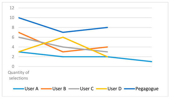 | Question | Positive/Negative | User A | User B | User C | User D | Pedagogue | Mean |