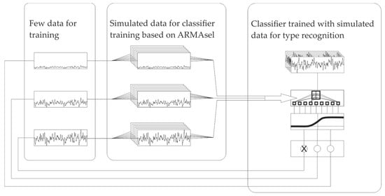 Hence, we propose a method that simulates the training data for the classifiers based on the measurement data of component surfaces. The calculated time series model coefficients from few sample data can serve as input for the generation of artificial surfaces that are then used for the training of classifiers for an ANN (Figure 1). Auto-regressive (AR), moving average (MA) and auto-regressive moving average (ARMA) models have been previously applied for the characterization of rough surfaces and the statistical description of roughness (see e.g., [,,]). We propose an approach based on the ARMAsel model presented by Broersen [] which can find the best possible time series model for an accurate description of a measured surface.
