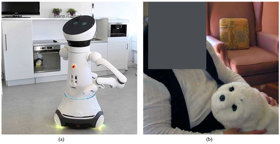 Examples of socially assistive robots: (a) Care-O-Bot robot; and (b) Paro robot.