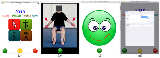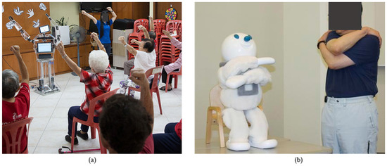 - Fasola, J.; Mataric, M.J. Robot exercise instructor: A socially assistive robot system to monitor and encourage physical exercise for the elderly. In Proceedings of the IEEE 19th International Symposium in Robot and Human Interactive Communication, Viareggio, Italy, 13–15 September 2010; pp. 416–421. [Google Scholar]