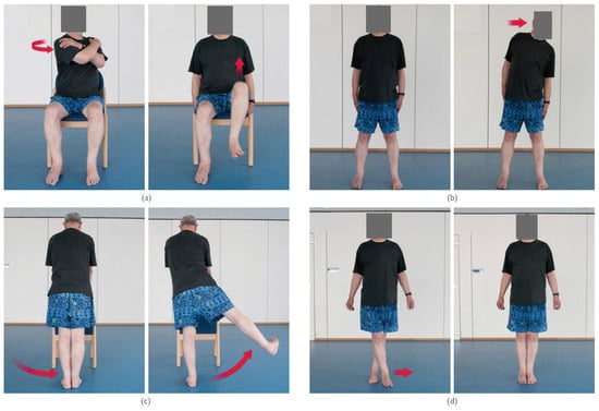 A sample of exercises recommended by National Health Services in the UK for older adults: (a) sitting exercises; (b) flexibility exercises; (c) strength exercises; and (d) balance exercises.