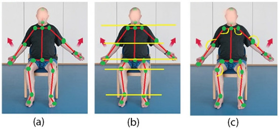 Exercise pose matching: (a) tracked skeleton; (b) comparing joint positions; and (c) comparing joint angles.