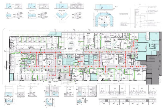 Whenever the user enters a museum room, the event is detected by the application, which loads the corresponding floor map and initiates the navigation process in the indoor space, such as in Figure 4. The user can interrupt the self-guided tour anytime to dial a call or to proceed to the restroom, the canteen/cafeteria, an information/emergency desk, or the exit. In the latter case, the application guides the user via voice navigation instructions towards the point of interest. The guided tour remains on pause until the user returns to the interruption point following the corresponding vocal instructions to continue the tour.