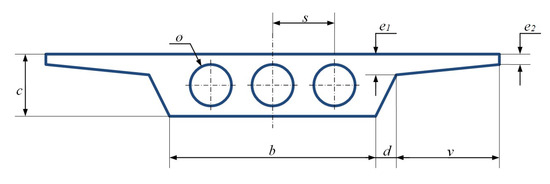 Note that for the analysis has been taken as design variables x1, x2, x3, …, xn. The parameters have fixed values, and are the rest of the data required for the calculations of the slab deck. The first objective function considered is the cost of the structure as defined in Equation (4), where pi are the unit prices and mi are the measurements of the units used for the construction of the PC slab. The cost function f1 includes the economic valuation of the materials (passive steel, active steel and concrete) and all the inputs necessary to calculate the total cost of the whole deck. To obtain the prices of the work units, the database of the Institute of Construction Technology of Catalonia [35] has been used and is given in Table 1.
