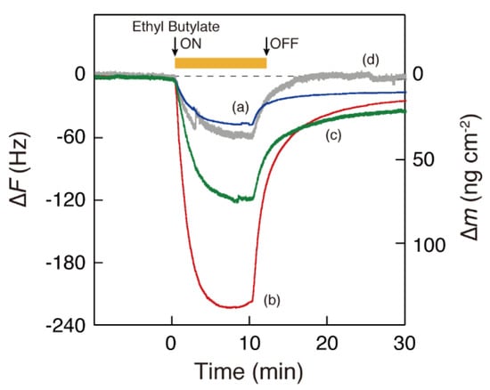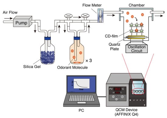 - Aguirre, S.M.; Yoshino, A.; Nakamoto, T.; Moriizumi, T. Odor approximation of fruit flavors using a QCM odor sensing system. Sens. Actuators B 2007, 123, 1101–1106. [Google Scholar] [CrossRef]