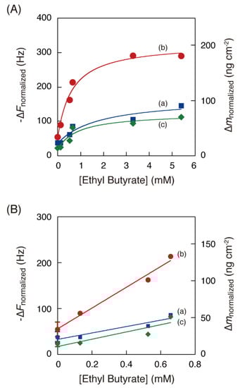 | ∆m *4 [normalized] *2 (ng cm−2) | Molecule [normalized] *2 (nmol cm−2) | Occupancy *5 (normalized) *6 | ∆m *4 [normalized] *2 (ng cm−2) | Molecule [normalized] *2 (nmol cm−2) | Occupancy *5 (normalized) *6 | |||