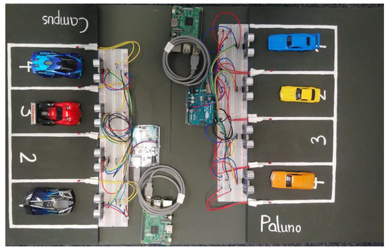 The proposed CPS framework has been applied on a smart car parking system. Therefore, a functional prototype was developed for the demonstration of a smart car parking system, consisting of a physical and a software implementation. Figure 5 shows the functional prototype; each parking lot is connected to a Raspberry Pi 3, which collects the evaluated sensor data from the Arduino and sends it to ARTIK cloud. The system maintains the information of the vehicle entering the parking area. The system uses the sensor to determine the identity of the vehicle. The user of the system gets support through a mobile application. Only registered users are able to use the system. In the following section, we have applied 8 activities of the proposed framework and identified its effectiveness.