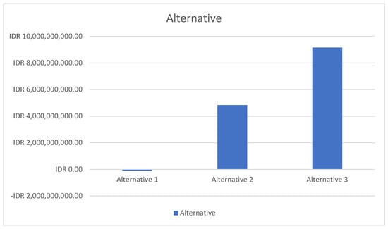 The calculation of the feasibility of the lithium iron phosphate battery business in the viewpoint of the NPV calculation requires that income received in a certain future period be equal to or greater than the value of expenditure in the year commencement of investment. Here, NPV calculation is also based on the assumption of market share control which consists of the first alternative with 44% market share, second alternative 68%, and third alternative 89%. Based on these assumptions, the NPV calculation is shown in Table 10 and Figure 4.