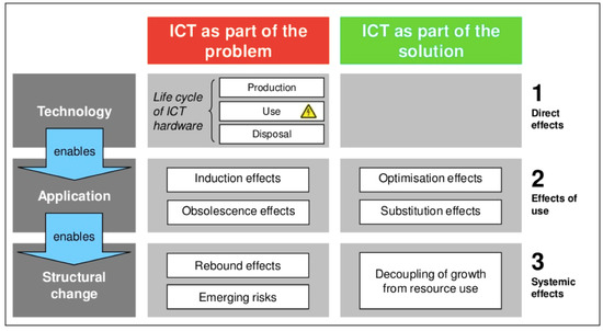 Conceptual framework of the impact of ICT on the environment by Hilty [5].