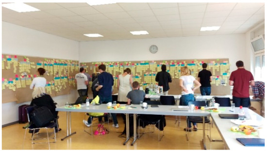 The results of the contextual inquiries were analyzed according to contextual design methods. All findings were gathered and arranged in an affinity diagram. They were clustered into different categories and physically put on a wall. The interpretation session of the contextual inquiry is depicted in Figure 2.