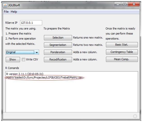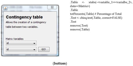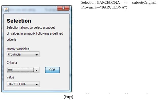 Figure 7, the operations are divided into two main groups. The first includes the preparation of the matrix (the dataset of the survey), the selection of a portion of the data of the entire matrix, the segmentation of the matrix, weighting of some of the columns of the matrix, and recodification. The other operations that can be executed are implemented on this matrix. The results are obtained also following the R syntax; as an example,