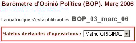 Selection (Selecció): this operation allows the selection of a subset of the matrix according to a specific condition;